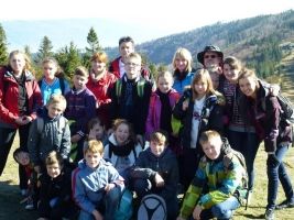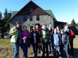 Na szczycie Klimczoka (1117m npm.), którego nazwa pochodzi o imienia słynnego rozbójnika, uczniowie spędzili kilka minut fotografując okolicę. Następnie wszyscy przeszli do schroniska, gdzie odpoczęli przed dalszą trasą. Tam również uczniowskie książeczki wzbogaciły się o kolejne pieczątki.