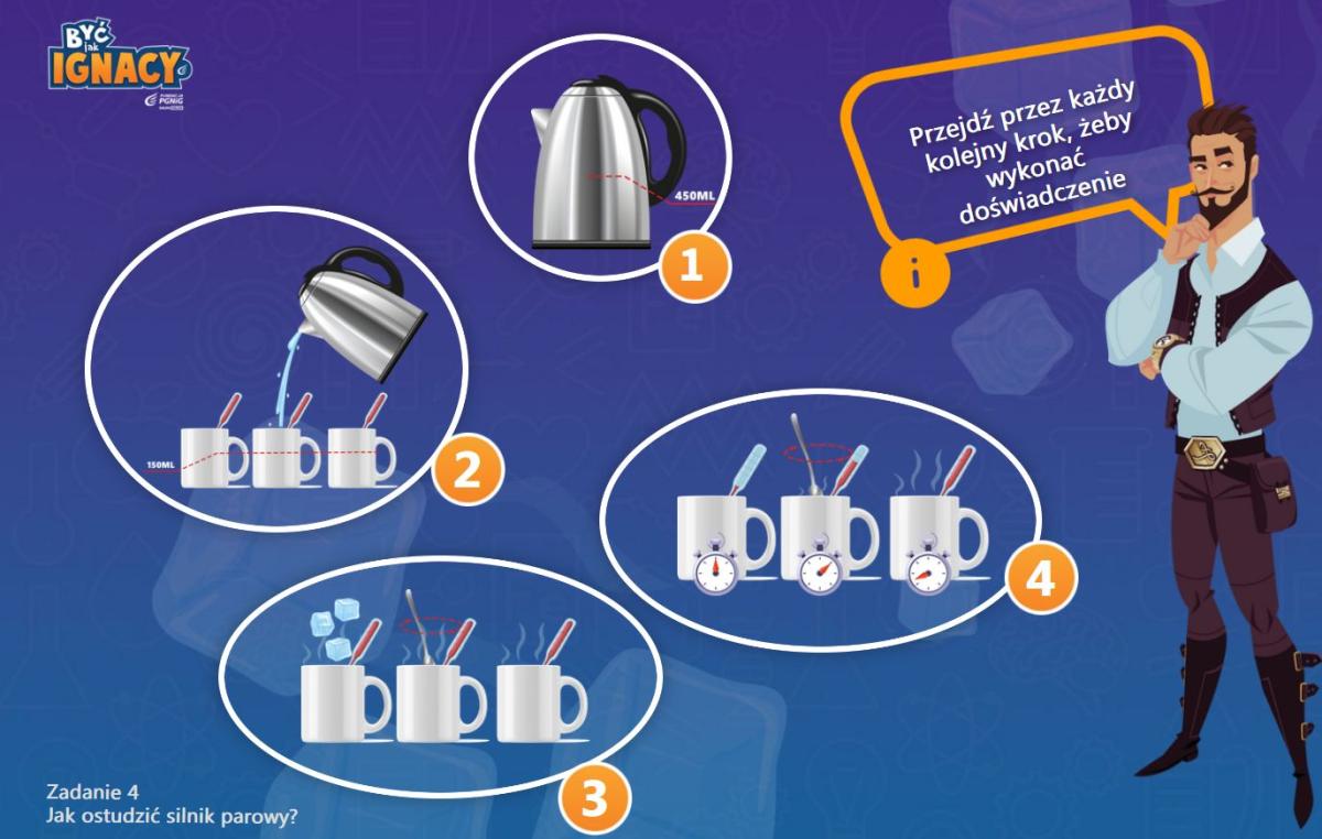 Poznaliśmy działanie maszyny parowej i wykonaliśmy trzy zadania: