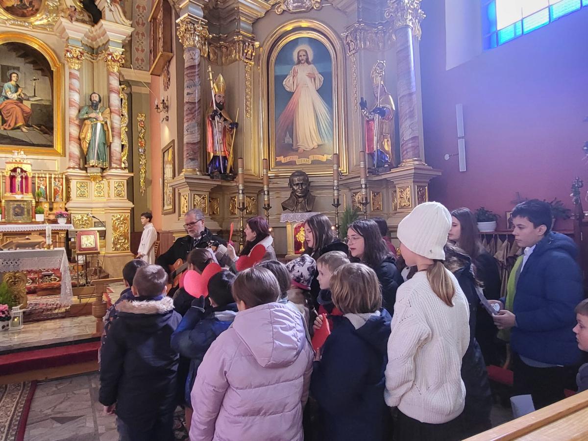 Już od rana w szkole brzmiały słowa piosenki „Bądź pozdrowiony…”. Ze śpiewem i radością przywitaliśmy Niezwykłego Gościa. Był czas na wspólną i indywidualną modlitwę. Kulminacyjnym punktem dnia była Eucharystia z ucałowaniem relikwii, a po niej rozmyślanie „Jak Ci dziękować…”.